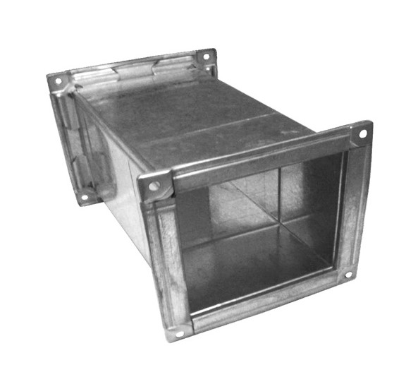 Ống gió chữ nhật (hay ống gió vuông) bích TDF thường được làm bằng vật liệu tole tráng kẽm.